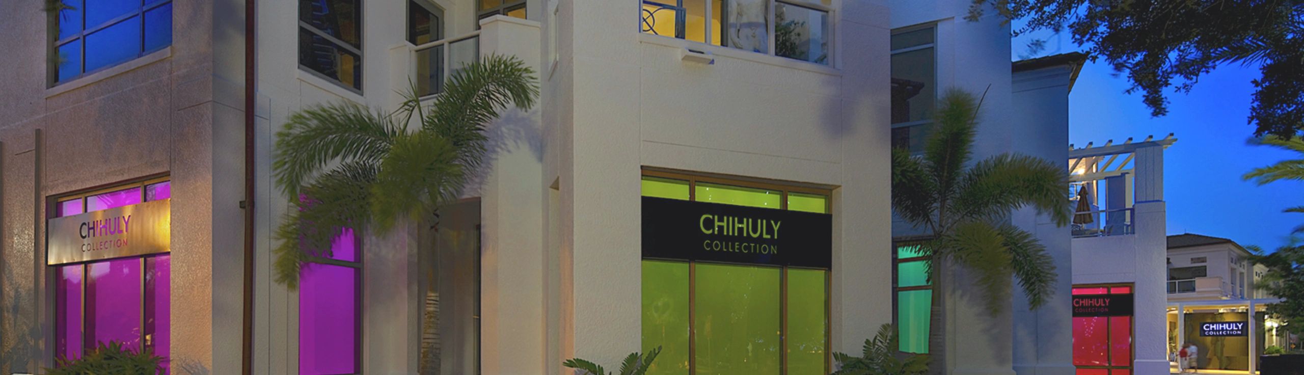 The objective of this project was to beautify the large retail windows that were blacked out to make a formal collection of Dale Chihuly’s famous glass work.